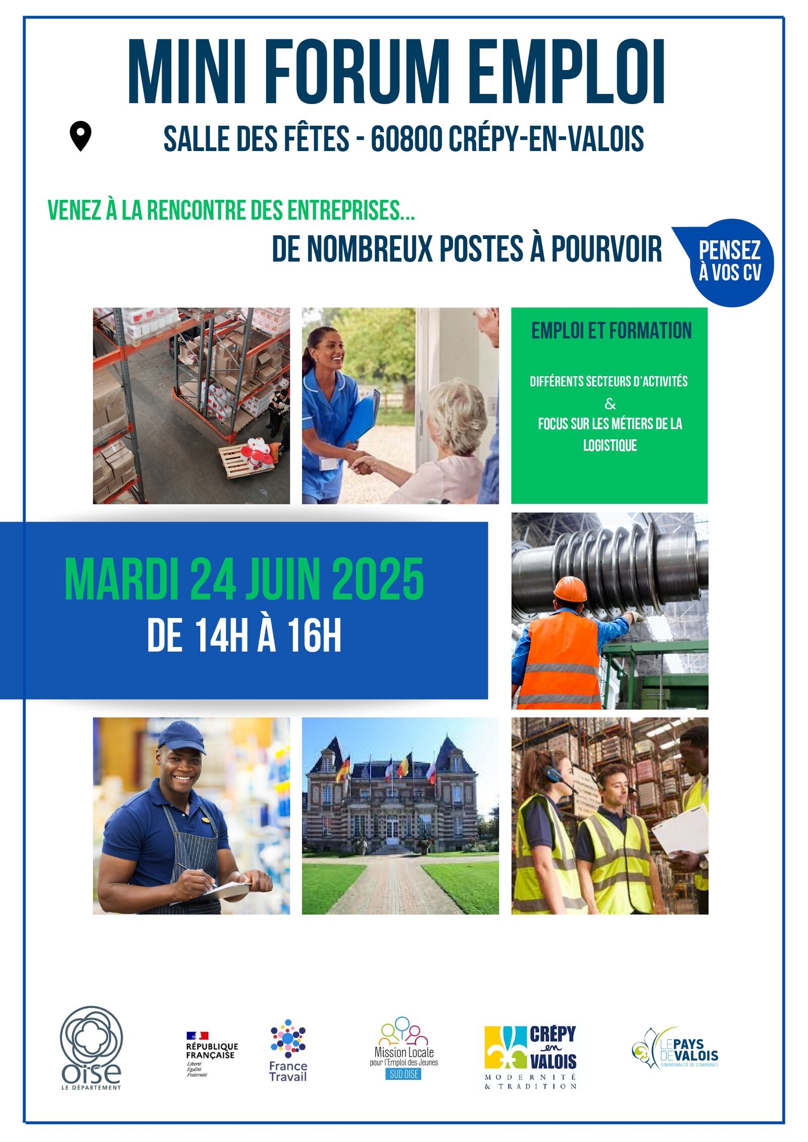 Participer au Mini-Forum Emploi organisé par le Conseil départemental de l’Oise à Crépy-en-Valois, un temps fort dédié à la rencontre entre candidats et employeurs locaux.