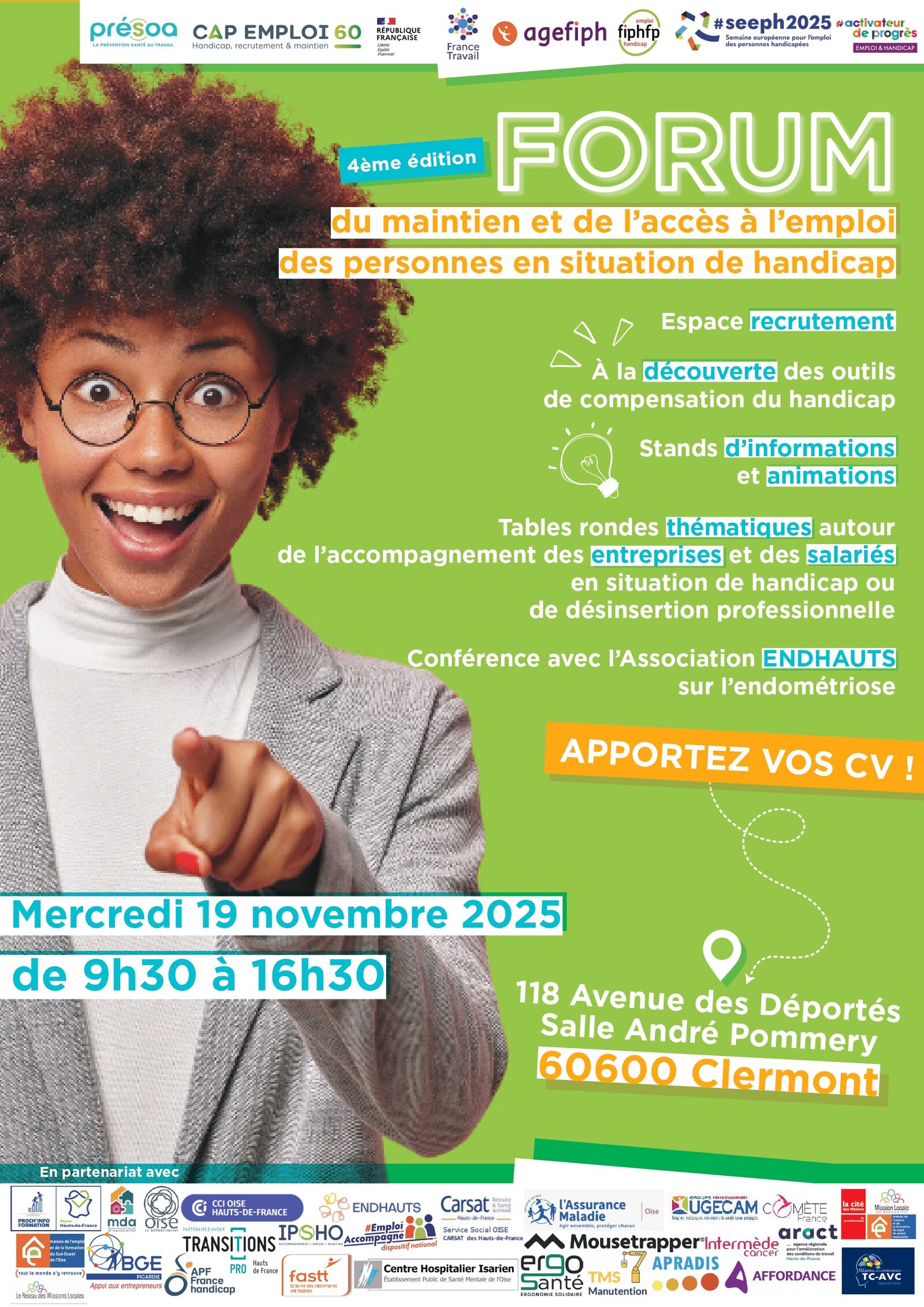 À l’occasion de la Semaine Européenne pour l’Emploi des Personnes Handicapées (SEEPH), notre Cap emploi et Présoa organisent la 4ᵉ édition du Forum du maintien et de l’accès à l’emploi.